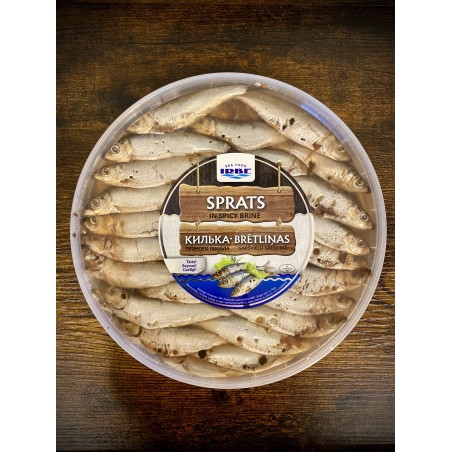 Složení: Baltské šproty - 80,8%, solný roztok (voda, kořeněná směs, sůl, konzervanty cukru) - 19,2%.