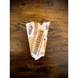 Složení: mléko 28%, smetana 28%, voda, cukr, kelímek na vafle 6%, slazený kondenzovaný mléčný výrobek, kakaový prášek, glukózový sirup, sušené odstředěné mléko, emulgátor 471, stabilizátory: E466, E412, E407.